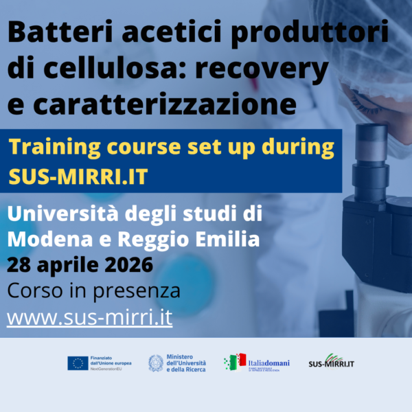 Il 28 aprile al via il training con focus sui batteri acetici produttori di cellulosa https://www.sus-mirri.it/wp-content/uploads/2026/04/SUS-MIRRI-2-1-1024x1024.png 1024 1024 SUS-MIRRI.IT //www.sus-mirri.it/wp-content/uploads/2024/02/sus-mirri_logo.pngL’Università degli Studi di Modena e Reggio Emilia organizza un nuovo appuntamento del ciclo di Training Courses SUS-MIRRI.IT, dedicato alla…