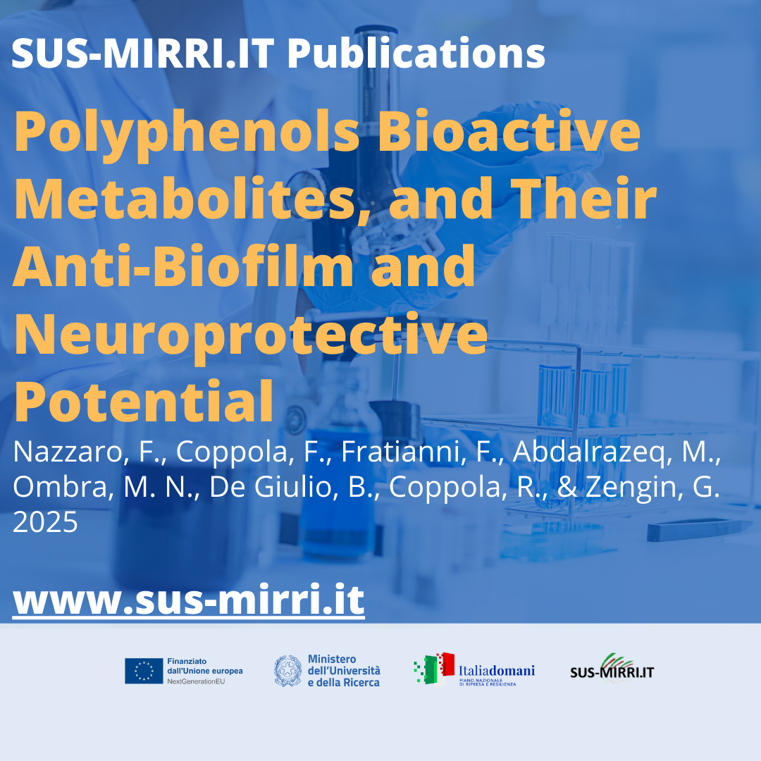 Nazzaro, F., Coppola, F., Fratianni, F., Abdalrazeq, M., Ombra, M. N., De Giulio, B., Coppola, R., & Zengin, G. 2025 Polyphenols Bioactive Metabolites, and Their Anti-Biofilm and Neuroprotective Potential Foods 14(22) 3976 https://doi.org/10.3390/foods14223976